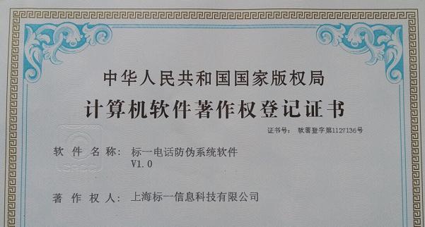 標(biāo)一在電話(huà)防偽系統(tǒng)方面取得的軟件著作權(quán)