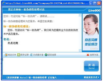 Live800在線請點擊主頁右上角浮動圖標(biāo),或在彈出選擇框中點擊接受,將出現(xiàn)如下對話框,標(biāo)一客服隨時恭候。