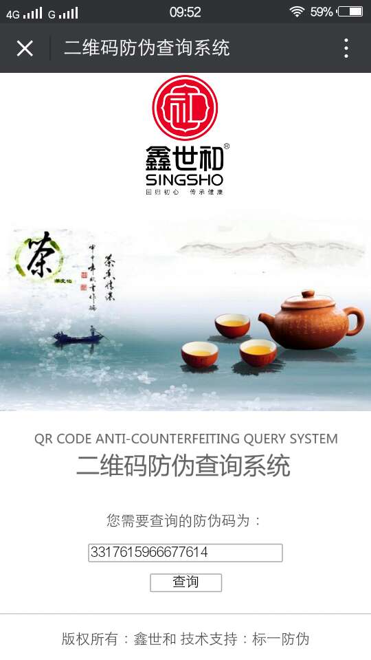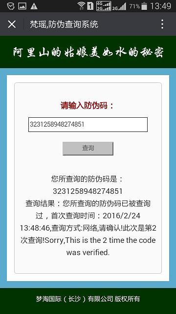 進(jìn)入個(gè)性化的查詢頁(yè)面,輸入標(biāo)簽上的16位防偽密碼,點(diǎn)查詢